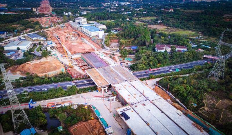 800吨钢箱梁跨实现精准落位。汪琳摄人民网长沙11月18日电 “成功移动到既定位置,800吨钢箱梁顺利完成顶推。”近日,长株高速上车流不断,而就在距离车流不足十米的上方,一场肉眼可见却悄无声息的“钢铁迁移”正在进行——800吨重的钢箱梁在液压顶推设备均匀而缓慢的牵引下缓缓前行。