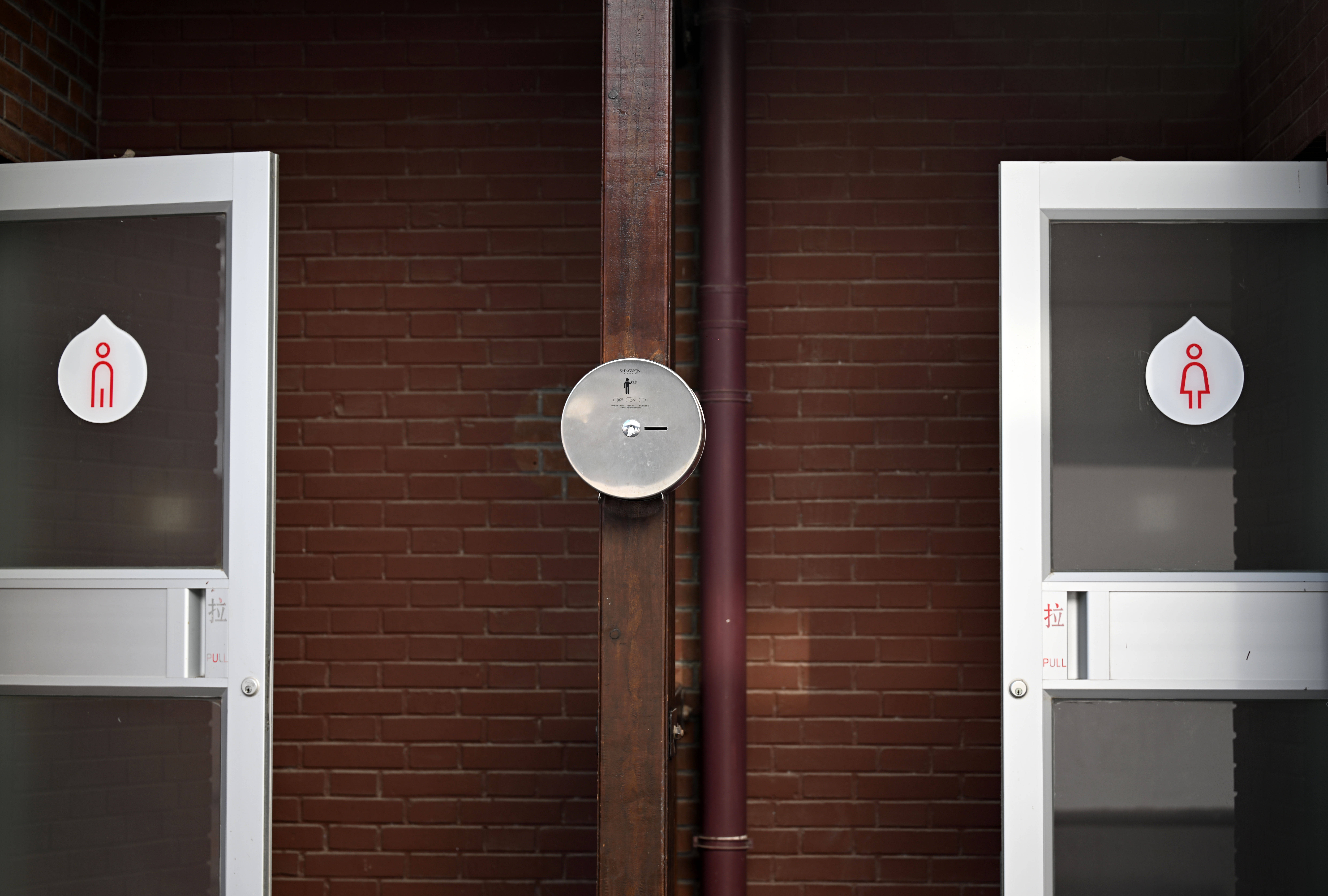 这是11月11日在天津一处景区拍摄的公共卫生间标识。左侧为男厕,右侧为女厕。