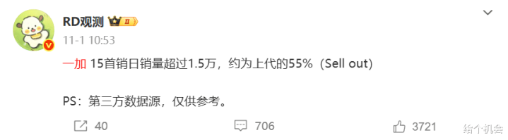 在旗舰市场采用这种策略还是很冒险的,因为大家都买旗舰手机了,肯定是更希望选到全面性强的机型,这就导致一加15首销时没有达到理想的预期,据RD观测统计的数据显示,一加15开售3天销量仅4.5万台左右,同期接近上代的55%。